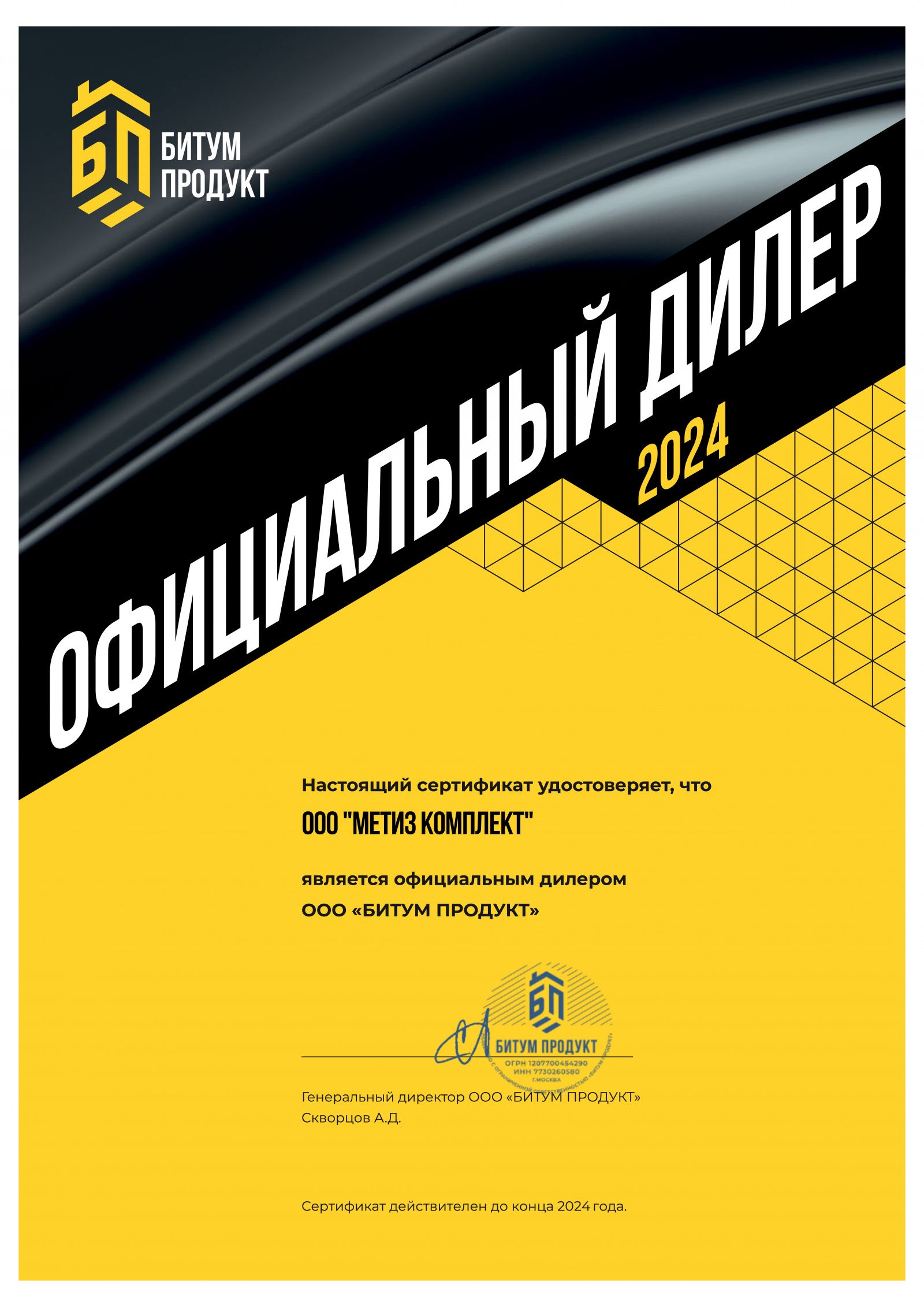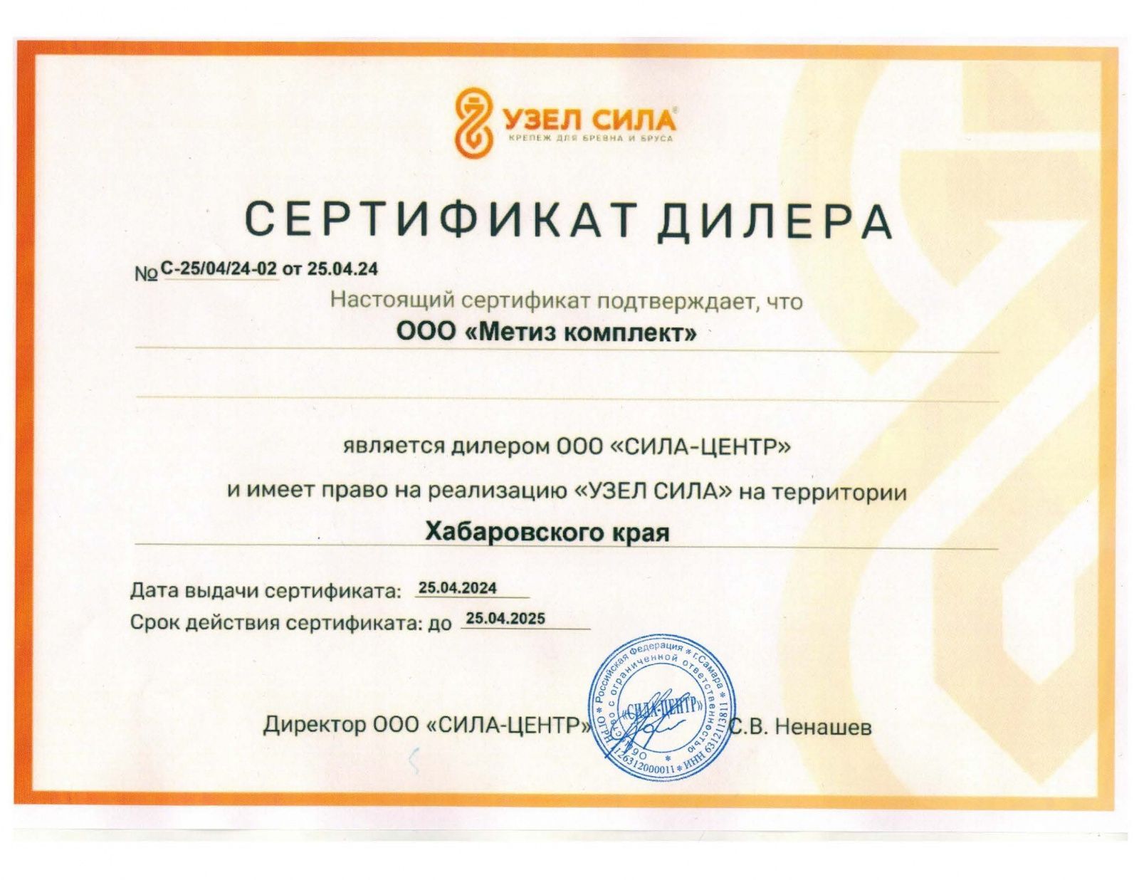 Сертификаты дилерства