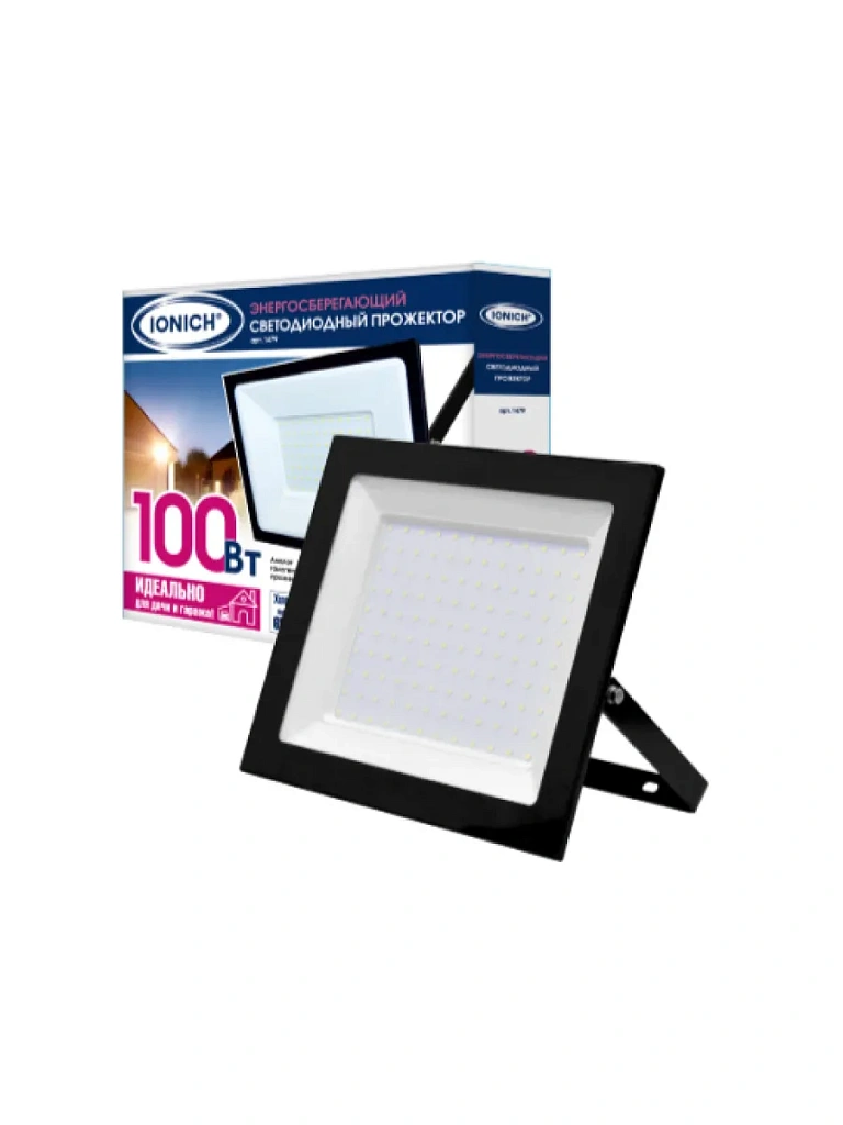 Светодиодный прожектор IONICH IFLSLED-DOB-100-865-BL-IP65 предназначен для декоративной и фасадной подсветки зданий, внутренних дворов, оград, гаражей, охраняемых территорий, подсветки рекламных конструкций, памятников, колон, деревьев, открытых пространств и объектов, спортивных сооружений, а также промышленных зон.