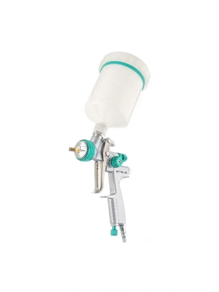 Краскораспылитель предназначен для проведения покрасочных работ. Бак инструмента размещается сверху и вмещает в себя 0.6 литров краски. Корпус модели имеет защитное покрытие из полированного хрома, что обеспечивает высокую износостойкость и долгий срок службы.