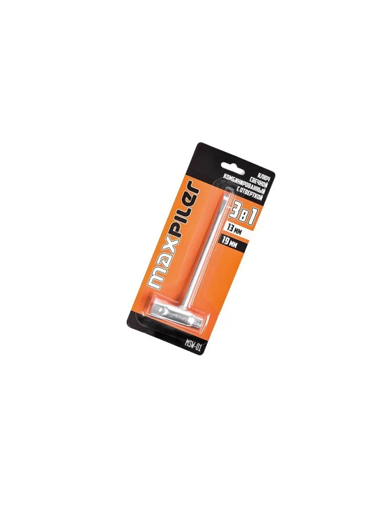Ключ-отвертка - это универсальный инструмент 3 в 1: он объединяет два гаечных ключа 13 мм и 19 мм и отвертку. Инструмент предназначен для монтажа свечи зажигания, откручивания и натяжки шины.