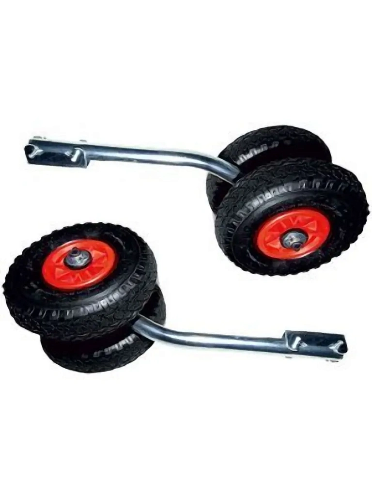 Устанавливаются на транец надувной лодки и подобно самолетным шасси имеют два положения: нижнее - для суши и верхнее - для воды. Фиксация стоек в разных положениях происходит при помощи подпружиненных защелок, которые легко передвигаются пальцами руки.