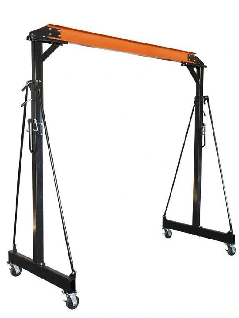 Устройство состоит из балки пролетной, стоек, укосин, колес поворотных, два из которых оснащены тормозом. Все составляющие крепятся между собой стандартными крепежными изделиями.