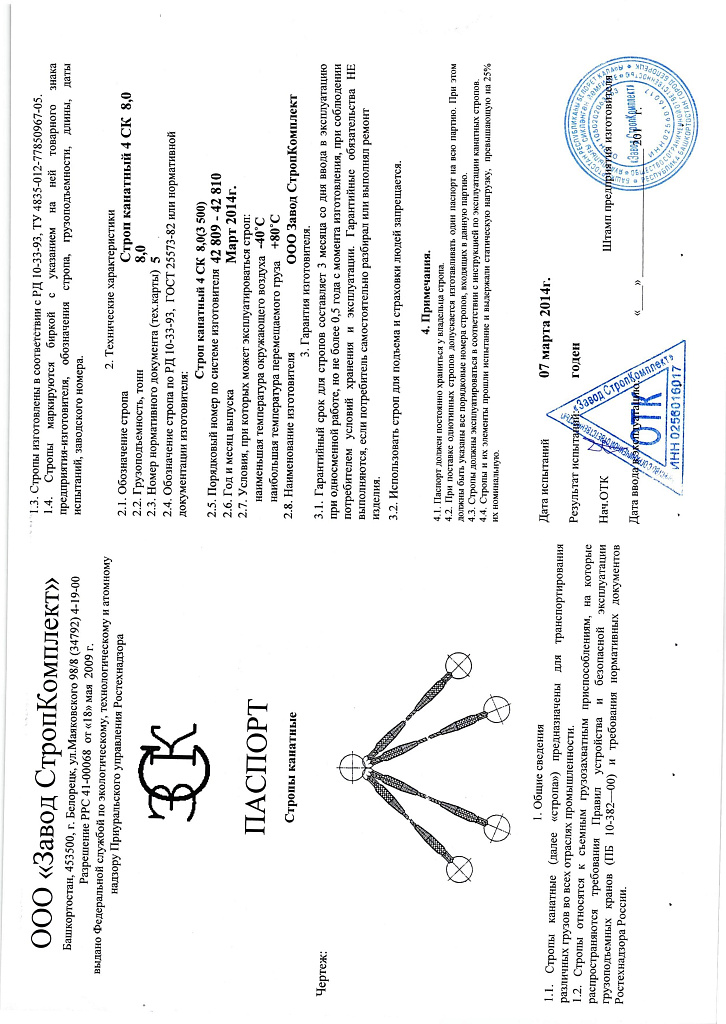 Состоит из 4 ветвей, треугольного звена соответствующей грузоподъемности и крюков.