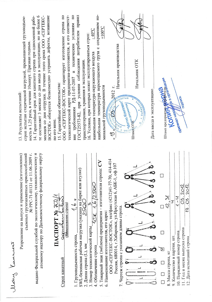 Одноветвевой строп производится согласно регламентирующим документам: ГОСТ 25573-82 и РД-10-33-93.