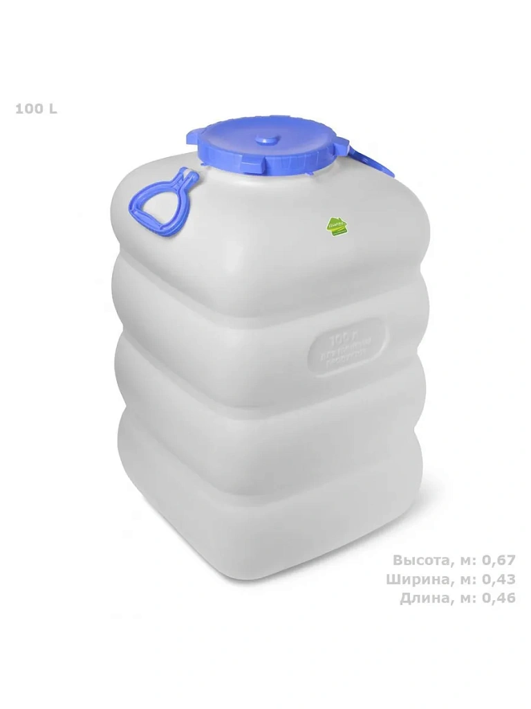 Полиэтиленовая фляга (бидон) объемом 100 литров с удобными ручками и резьбовой крышкой, снабженной внутренним вкладышем для дополнительной герметизации. Емкость абсолютно герметична.