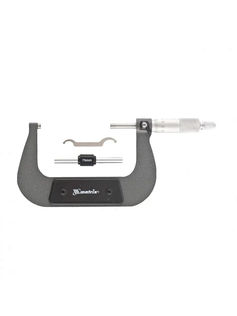 Механический микрометр используется для измерения деталей размером 75-100 мм. Обеспечивает высокую точность результатов — шаг измерения составляет 0,01 мм с допустимой погрешностью ±0,004 мм. Комплектуется установочной мерой, позволяющей при необходимости произвести настройку прибора. Микрометр применяется для определения толщины листового металла, проволоки, различных деталей. Будет полезен на производстве, в слесарной мастерской и автосервисе.
