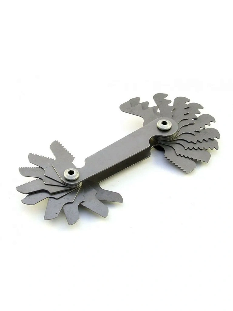 Набор шаблонов резьбовых – это контрольно-измерительный инструмент, необходимый при слесарных и токарных работах.