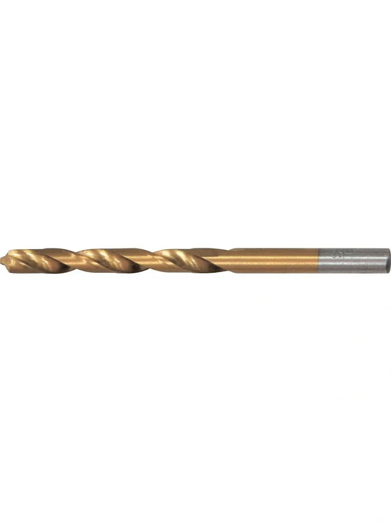 Изготовлено из инструментальной легированной стали. Поверхность сверла из титаносодержащего сплава, что значительно повышает эксплуатационные характеристики сверл по металлу (покрытие из нитрида титана увеличивает стойкость инструмента в 2–2,5 раза).