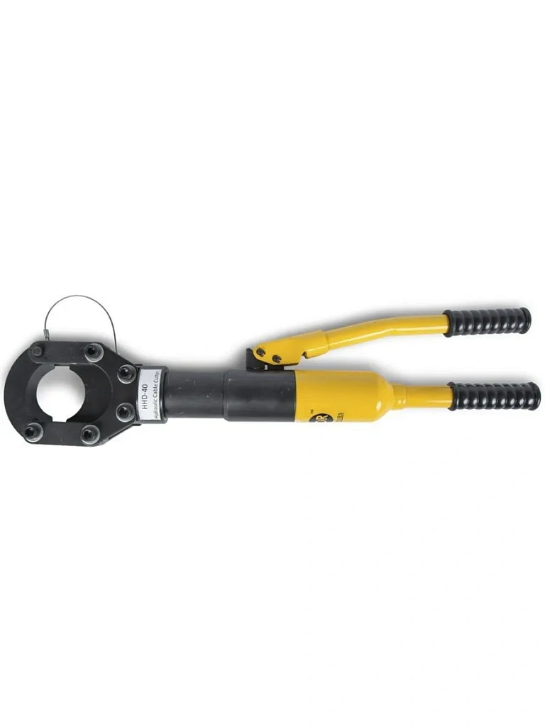 Кабелерез гидравлический TOR HHD-40 7т, 40 мм Кабелерез ручной гидравлический предназначен для резки кабеля любого типа (кроме кабеля, бронированного стальной проволокой или имеющего стальной сердечник). Малый вес и компактность гидравлического кабелереза позволяют использовать его непосредственно на месте проведения ремонтных либо монтажных работ. Данное устройство может работать совместно с любым типом гидравлического насоса одинарного действия. Кроме того, гидравлический кабелерез обеспечивает высокую производительность и относительно ровный срез. Передача усилия на режущую часть производится с помощью гидравлического привода, который приводится в движение с помощью рычага управления резкой.