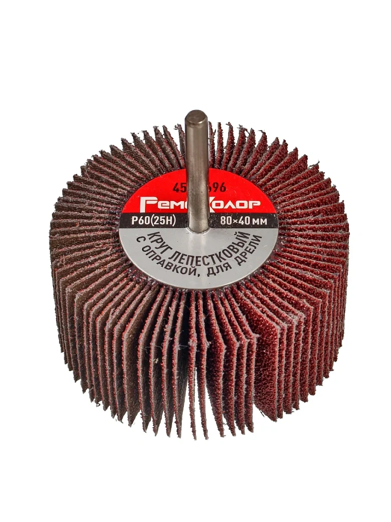 Лепестковый круг оснастка для дрелей и прямых шлифовальных машинок с посадочным гнездом 6 мм. Круг применяется для грубой обработки древесины, металла, пластика и других материалов, эффективно снимает толстые слои краски и ржавчины, зачищает сварные швы, удаляет заусенцы.