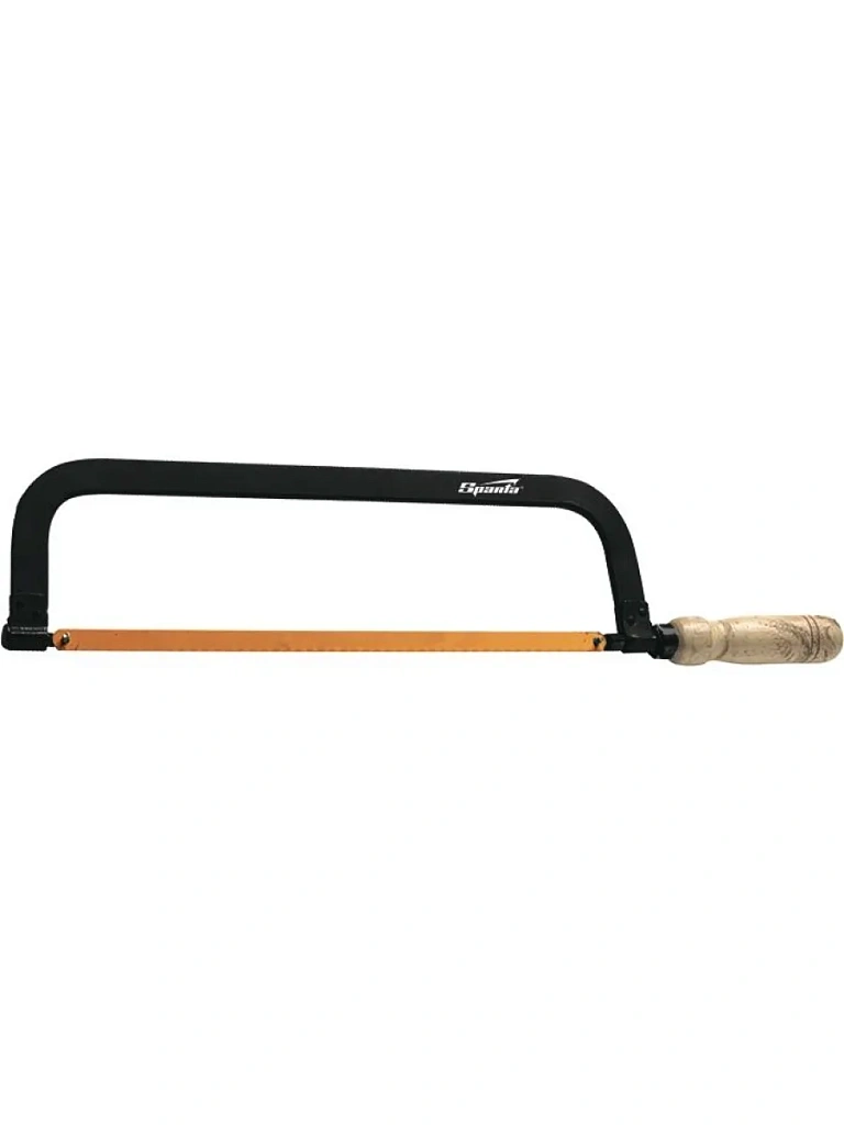 Ножовка по металлу классической формы со стальной рамой и деревянной рукояткой. В ножовке используются полотна длиной 300 мм. Предназначена для распиловки металла, ДСП, ПВХ, пластмассы, ламината и т. п. при проведении слесарно-монтажных и строительных работ.