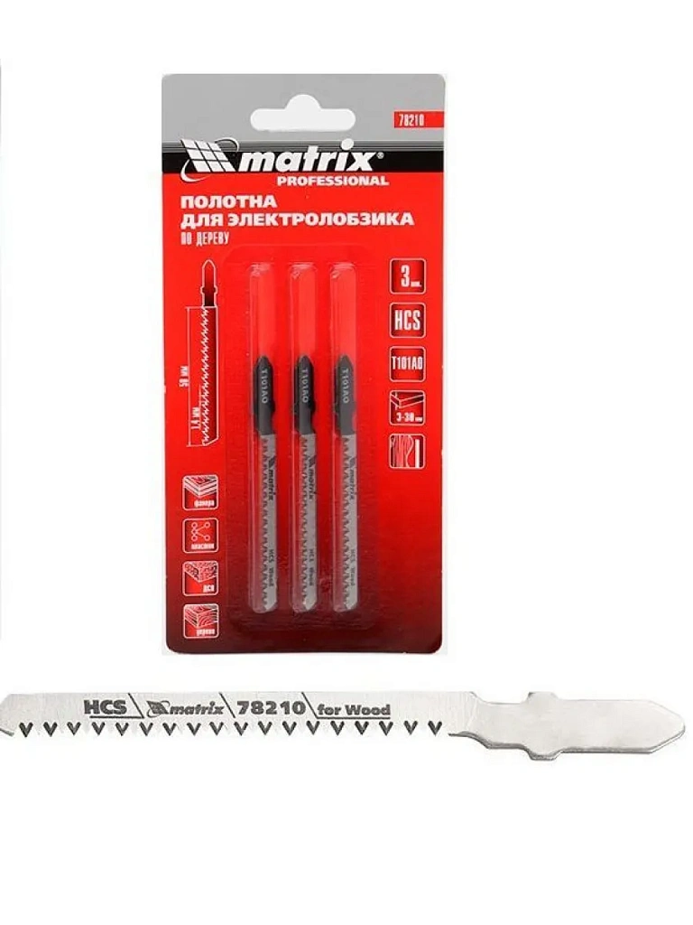Полотна для электролобзика Matrix 78210, T101AO, 50 х 1,4 мм, 3 шт. в упаковке, предназначены для фигурного реза по дереву. Выполняют тонкий криволинейный распил фанеры, древесины, ДСП, ДВП толщиной от 3 до 30 мм. Имеют стандартный хвостовик и подходят для большинства современных электролобзиков. Пилки предназначены для выполнения столярных работ.