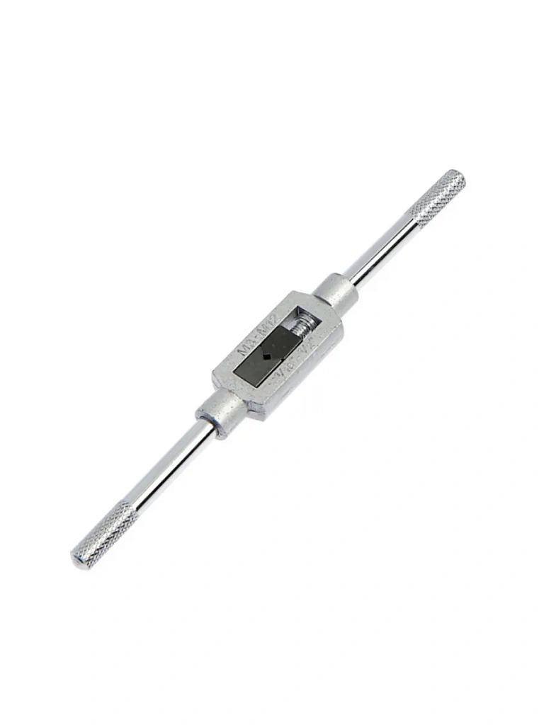 Предназначен для четкой фиксации метчиков в процессе нарезания метрической резьбы. Инструмент изготовлен из качественной стали высокой прочности и надежности. Специальное рифленое покрытие на рукоятках обеспечивает удобное удержание инструмента.