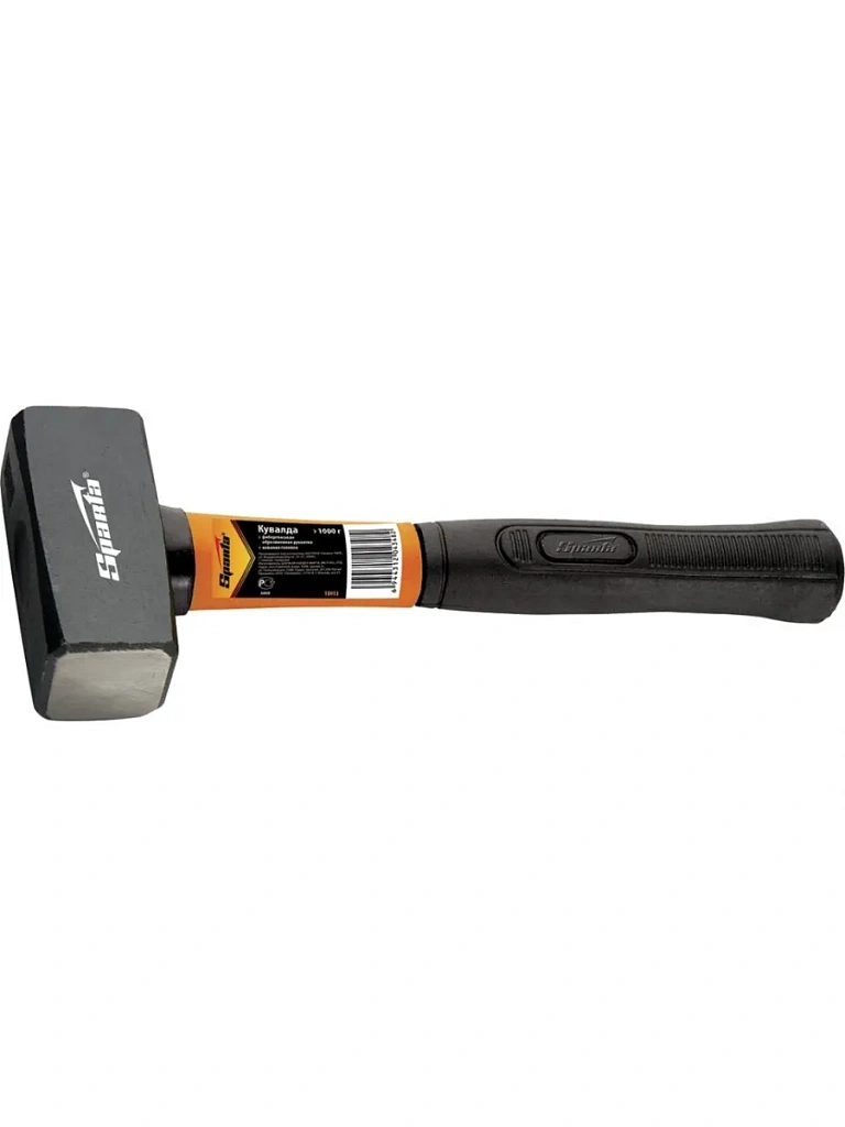 Головка кувалды кованая, покрыта черным лаком, изготовлена из стали 45. Бойку придана селективная закалка, обеспечивающая особую твердость и прочность (52 HRc). Боек слегка выпуклый и отшлифован с обеих сторон. Фибергласовая рукоятка амортизирует отдачу при ударе. Резиновое покрытие препятствует скольжению в руке и обеспечивает удобный и надежный захват.