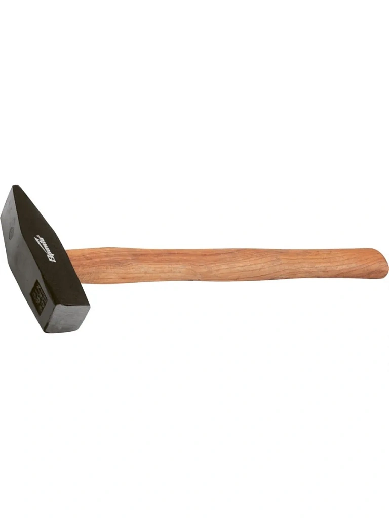 Рабочая часть инструмента покрыта черным лаком и надежно зафиксирована на рукоятке при помощи клина и специального эпоксидного клея. Боек кованый и отфрезерованный. Проведена селективная закалка, обеспечивающая бойку прочность и препятствующая образованию расклепов на его гранях. Деревянная рукоятка c прямым волокном, без сучков, защищена от рассыхания бесцветным лаком.