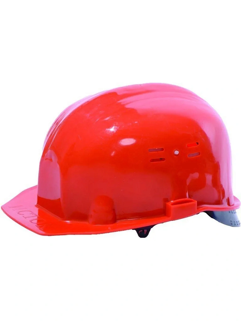 Защитная каска с храповиком и с вентиляцией изготовлена из полиэтилена.