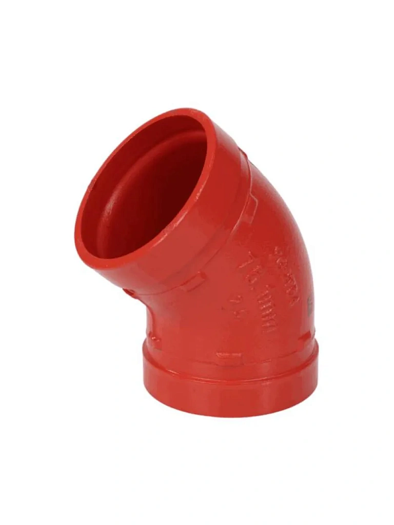 Отвод (колено) под муфту 45° грувлок ковкий чугун представляет собой высококачественный соединительный элемент, предназначенный для изменения направления трубопровода на 45 градусов. Обеспечивает исключительную прочность, устойчивость к механическим нагрузкам и коррозии. Материал сочетает пластичность стали и долговечность чугуна, выдерживая рабочее давление до 25 бар (Ру25) и температуру от -30°C до +120°C. Наружное и внутреннее покрытие цинковым слоем толщиной 50 мкм по методу горячего цинкования гарантирует защиту от ржавчины в агрессивных средах. Конструкция позволяет осуществлять быстрый монтаж без сварки с помощью стандартных муфт. Резьбовые соединения отсутствуют, что повышает герметичность и снижает риск протечек.