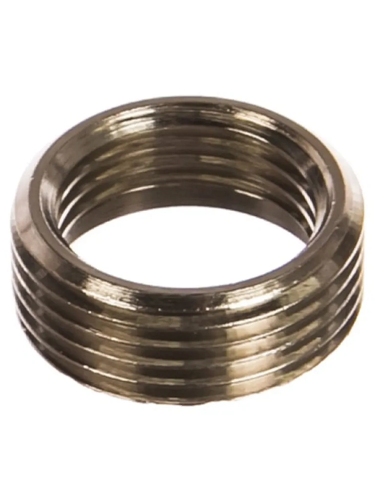 Переходное кольцо используется совместно с трубопроводом в качестве соединительного элемента. Имеет как внешнюю, так и внутреннею резьбу, что позволяет соединить между собой отрезки труб различные по резьбе. С помощью приспособления осуществляется переход с внутренней на наружную резьбу, большую по диаметру. Кольцо выполнено из никелированной латуни, за счет чего не подвергается коррозии и любым механическим и химическим воздействиям.