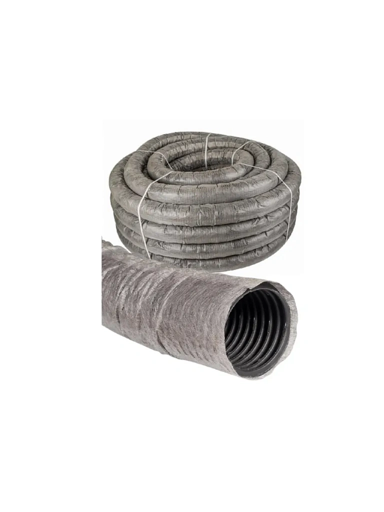 Дренажная труба гофрированная в фильтре геотекстиль Typar Ø110 мм используется для сбора и отвода отфильтрованных и подземных вод.