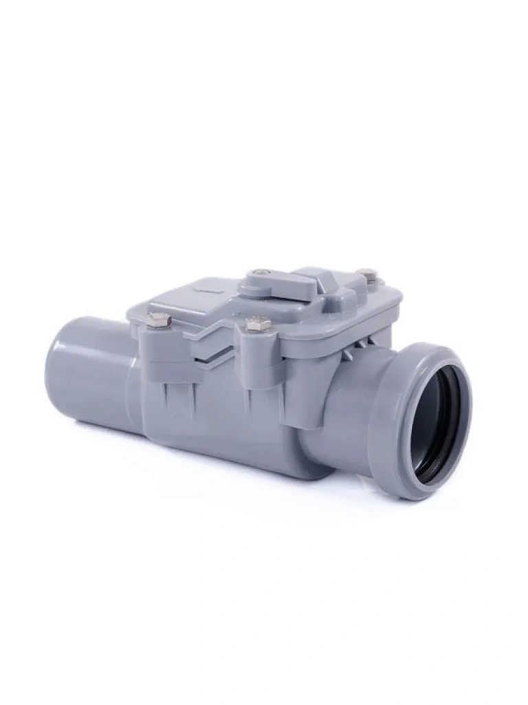 Клапан обратный канализационный устанавливается строго горизонтально - либо в подвале здания (перед выходом внутренней канализационной магистрали во внешнюю), - либо в приямке снаружи здания. Таким образом, клапан канализационный отделяет внутреннюю канализационную сеть здания от внешней канализационной сети. Входной и выпускной патрубки клапана предназначены для соединения с любой канализационной раструбной трубой из ПП или ПВХ. Если для канализации применяются стальная или чугунная безраструбная труба, необходимо использовать переходник с ПП/ПВХ на Чугун/Сталь.