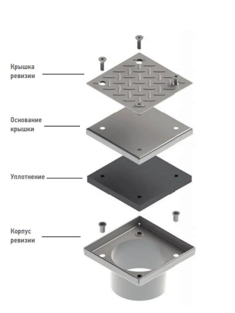 Ревизия-прочистка Rw150/110. Лючок прочистка из нержавеющей стали - элемент канализации, все составляющие которого - корпус, крышка, винты выполнены из нержавеющей стали марки AISI 304.
