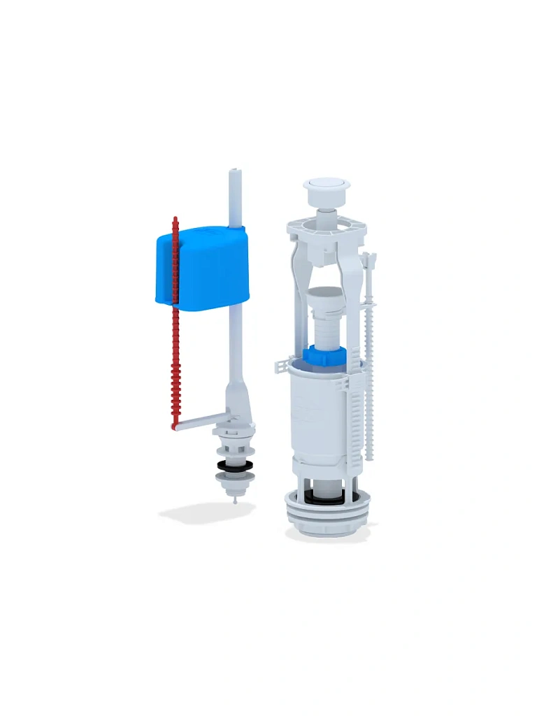 Наливной механизм с нижней подводкой и пластиковой резьбой диаметром G 1/2, регулировка по высоте 234-328 мм.