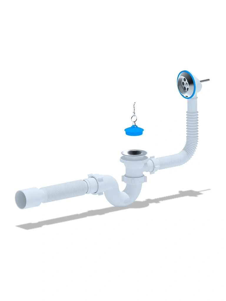 - Для ванн с отверстием слива Ø50 мм и отверстием перелива от Ø 36 до 63 мм (стандартное отверстие 50 мм)