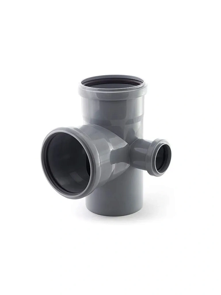Крестовина двухплоскостная используется для слива сточных вод из двух плоскостей помещения, а также для отвода агрессивных вод. В качестве уплотнителей используются резиновые кольца манжетного типа с распорным вкладышем. Монтаж желательно производить с применением специальной силиконовой смазки.