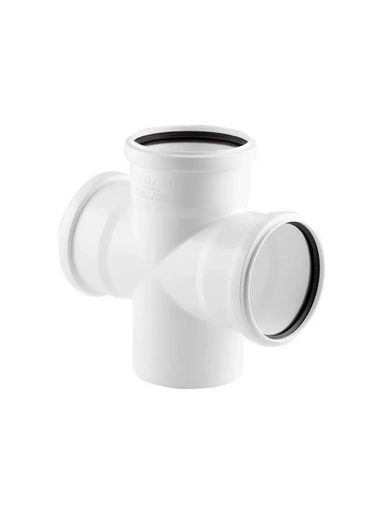 Крестовина в трубопроводных системах с улучшенным шумопоглащением предназначена для подключения к трубопроводу дополнительных ответвлений в одной (одноплоскостная) плоскости.