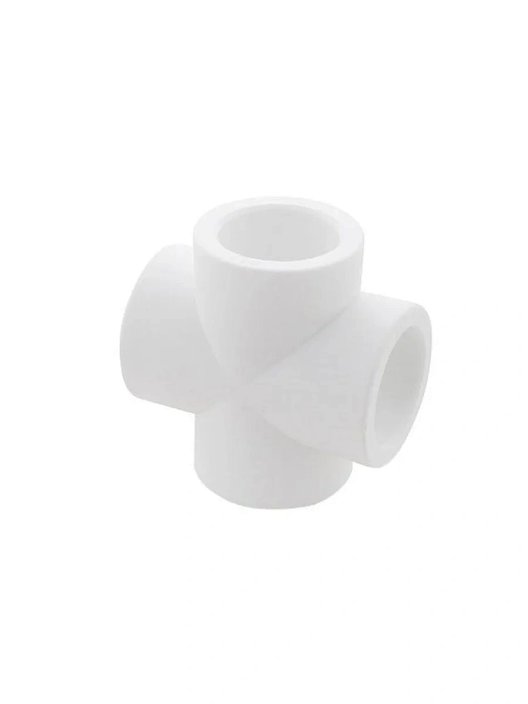 Крестовина предназначена для соединения четырех PPR труб одинакового диаметра. Метод монтажа - раструбная сварка. Крестовина изготовлена в соответствии с ГОСТ 32415-2013 и может выдерживать давление до 25 бар.