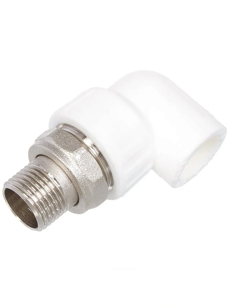 Угольник для радиатора с наружной резьбой предназначен для присоединения полипропиленовой трубы к радиатору с внутренней резьбой под углом 90 градусов друг к другу.