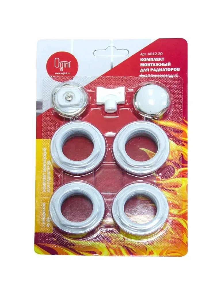 Комплект монтажный универсальный Ogint A012-20 применяется при установке алюминиевых и биметаллических радиаторов. В комплекте собраны все необходимые детали для подключения отопительного прибора.