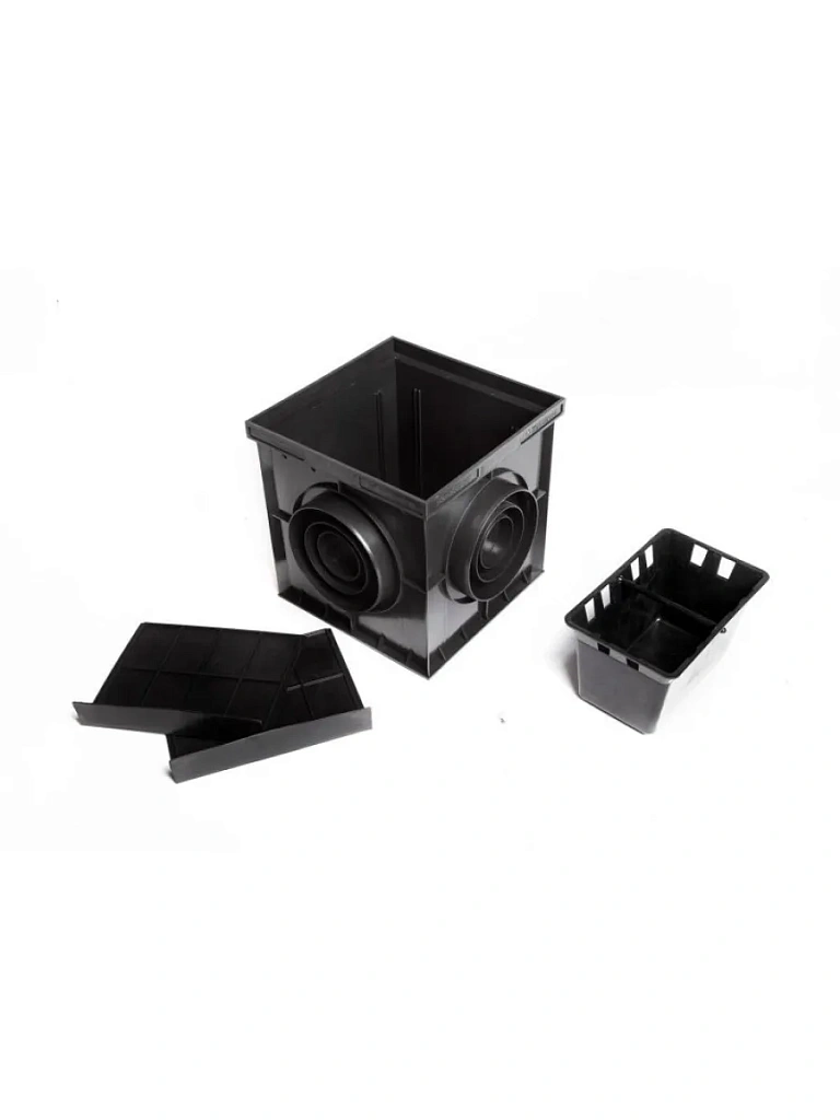 Одним из главных элементов такого вида системы водоотвода является дождеприёмник, в комплекте с которым идут две перегородки-отсекателя запаха, создающих эффект "сифона".