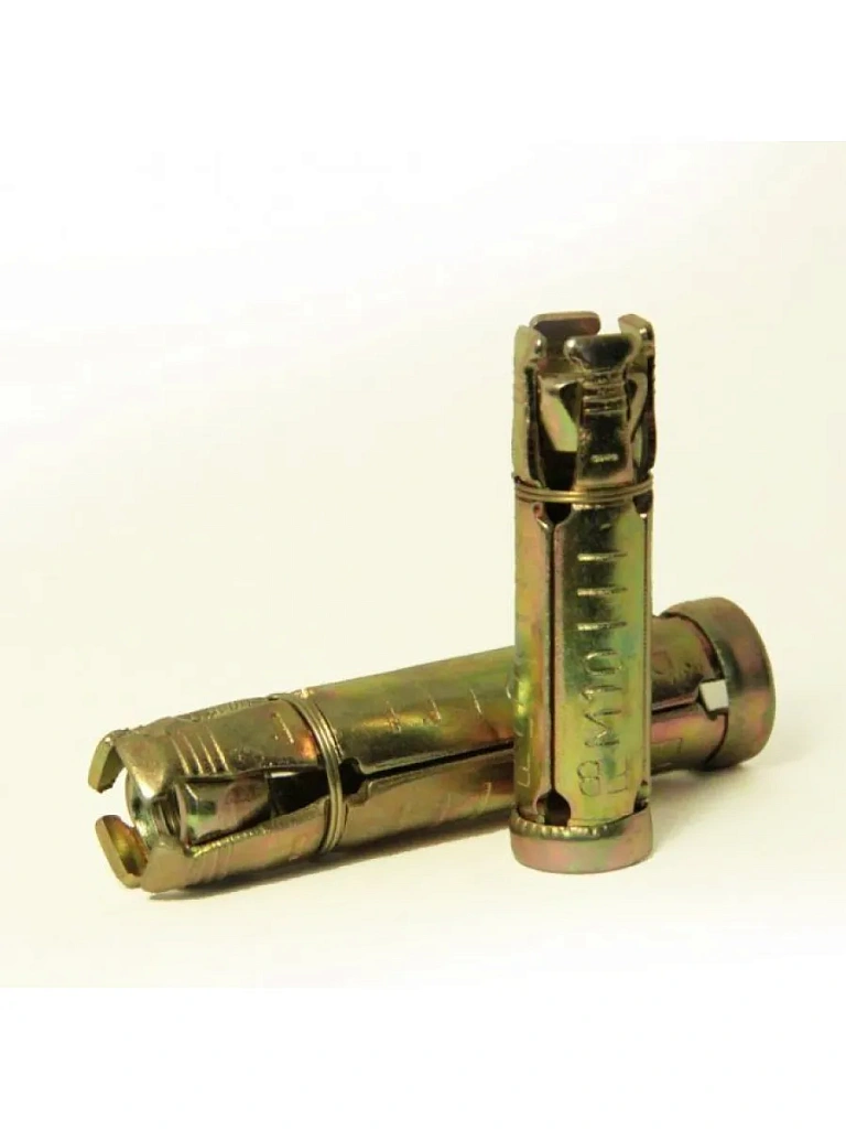 Разжимной 4-х сегментный анкер представляет собой цилиндр, состоящий из четырёх независимых сегментов. Крепление сегментов анкера осуществляется следующим образом: сверху их сдерживает кольцо, на нижней части сдерживающая пружина. Внутри же анкера имеется распорный элемент. У него четыре грани. Разжимной 4-х сегментный анкер изготавливается из оцинкованной (желтопассивированной) стали.