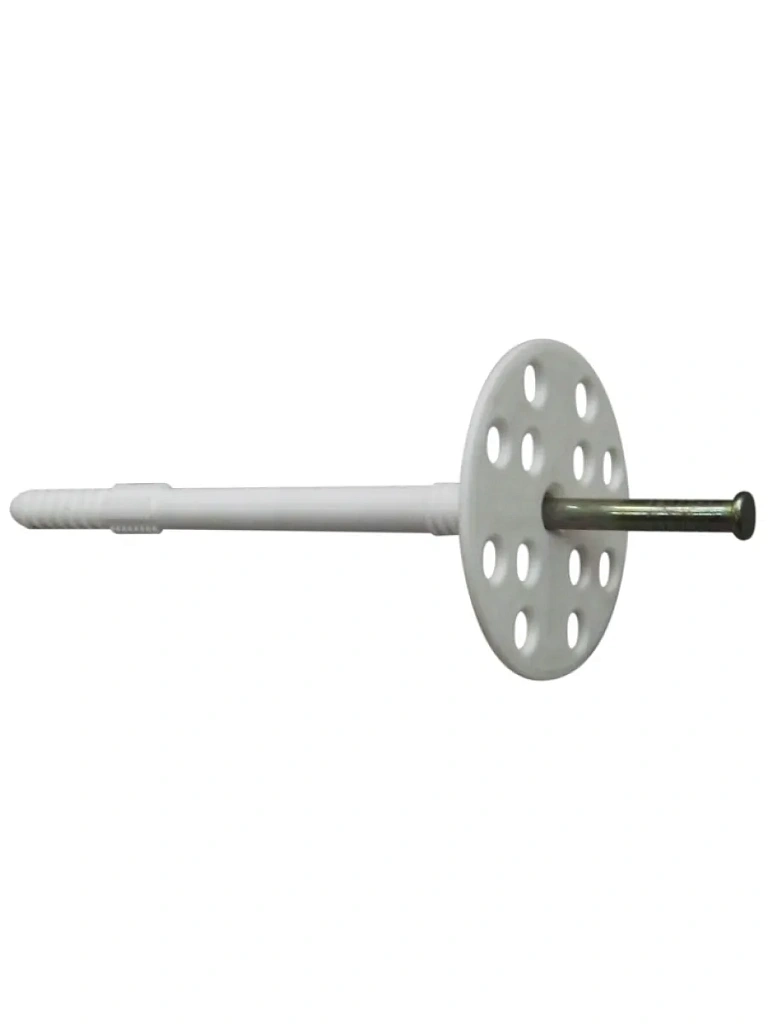 Фасадный полимерный тарельчатый дюбель диаметром шляпки 60 мм, со стальным гвоздем, для крепления утеплителя к внутренним и наружным стенам в мало- и многоэтажном строительстве.