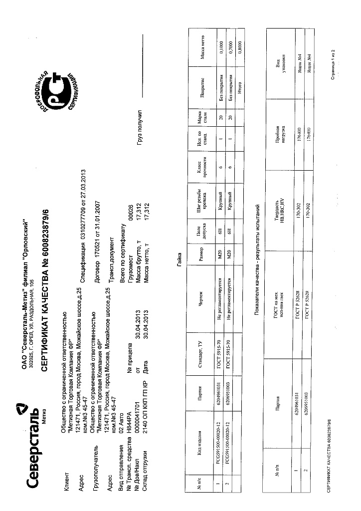 Диаметр (d),мм 20 Размер под ключ (S),мм 30 Шаг резьбы (p),мм 2,5 Кол-во шт в кг 14 Масса 1000 шт кг 71.44