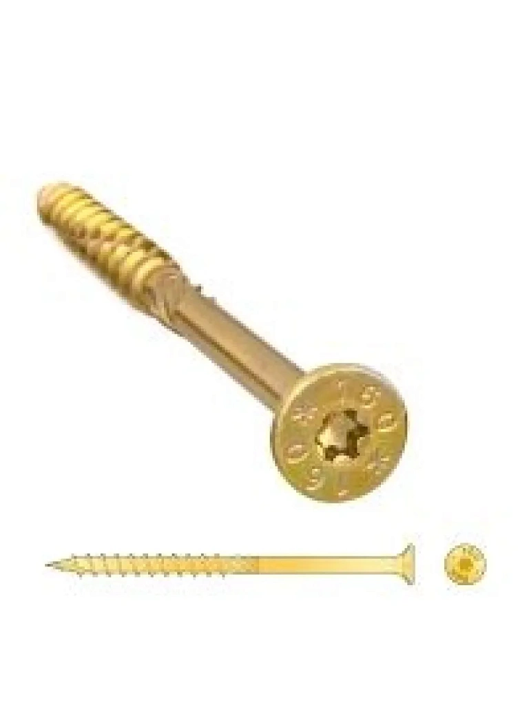 Конструкционный саморез с потайной головкой позволяет быстро строить из дерева, выполняя в одно движение засверливание, вкручивание и зенковку шрупа. При этом раскалыванию основания препятствует специальная конструкция самореза, включающая специальные насечки на резыбе для перемалывания стружки и турбину для расширения отверстия.