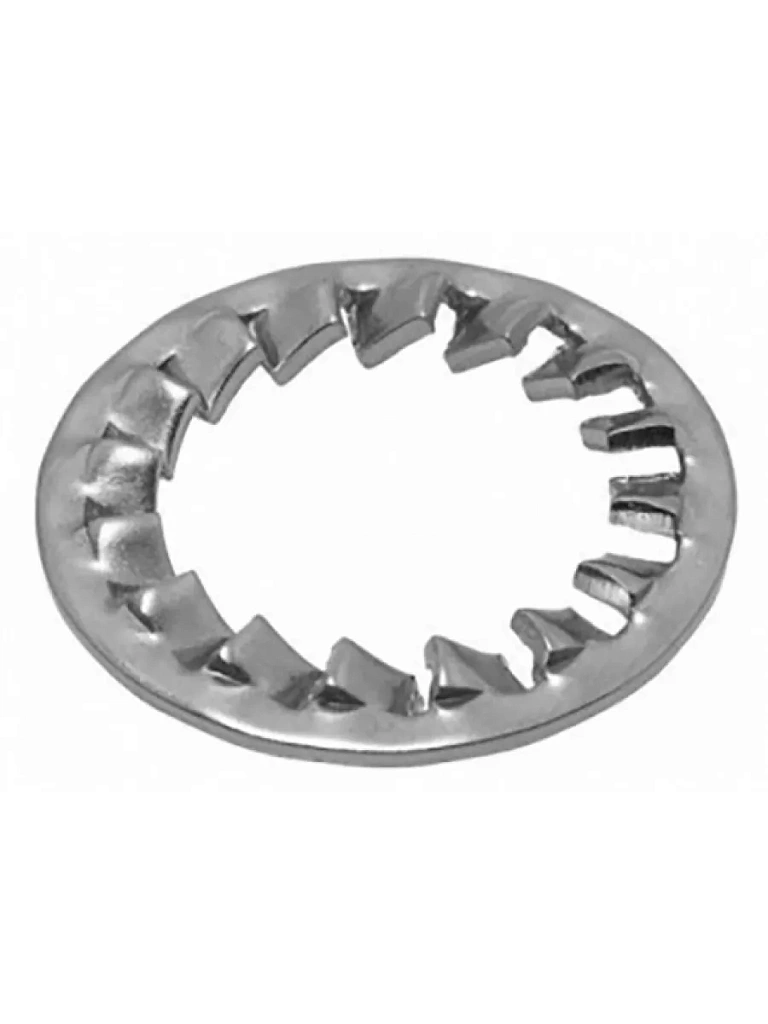 Стопорная шайба DIN 6798 J отличается наличием зубцов, благодаря которым шайба надежно и прочно сцепляется с материалом поверхности. Маркировка J шайбы DIN 6798 говорит о том, что зубцы расположены во внутреннем отверстии шайбы. Отличительной особенностью стопорной шайбы DIN 6798 J является небольшое расстояние между зубьями и, следовательно, их большее количество. Благодаря прочному сцеплению зубьев с поверхностью шайба исключает проворот соединения и надежно стопорит крепеж даже в условиях вибрации. Стопорная шайба с внутренними зубьями производится из большого количества материалов, что облегчает ее выбор для решения конкретных задач на производстве.