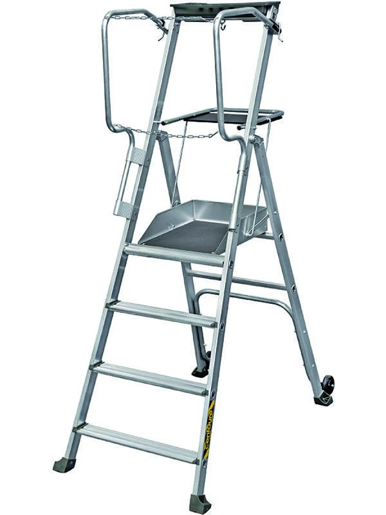 Полная безопасность на любой высоте благодаря складным перилам безопасности и двум цепочкам