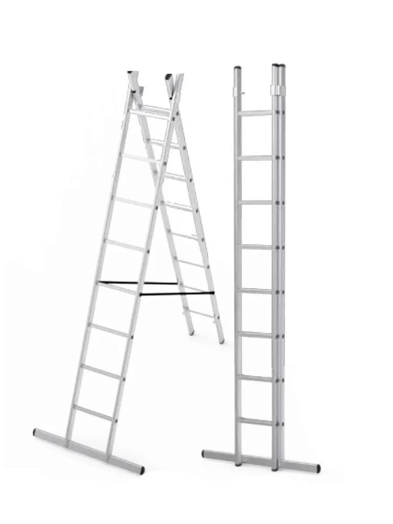 Алюминиевая 2-секционная лестница 2х8 ступеней предназначена для выполнения строительных, ремонтных, отделочных или иных видов работ, когда необходимо произвести какие-либо действия на высоте.