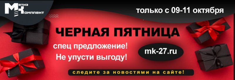 Дорогие друзья! С 9 по 11 октября в компании Метиз Комплект пройдет грандиозная акция — Черная пятница!