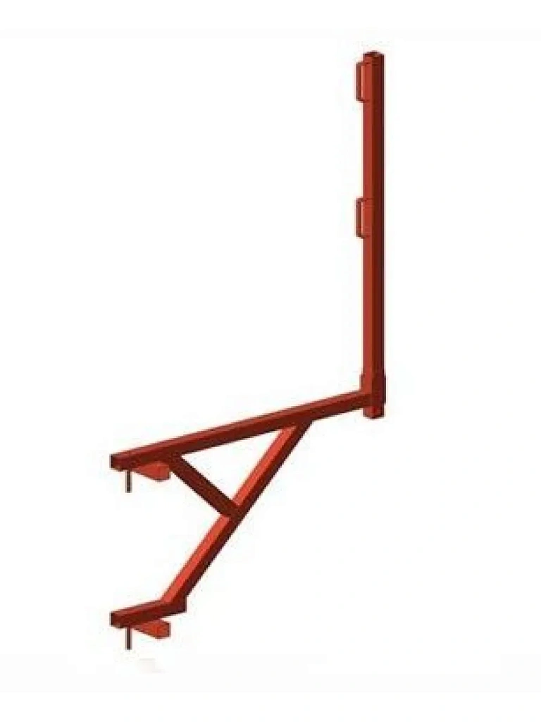 Кронштейн подмости устанавливается как на стальную, так и на алюминиевую щитовую опалубку. Он обеспечивает безопасную работу строителей на опалубке. Кронштей оснащен вертикальными стойками с захватами по деревянную доску, которая служит перилами ограждения.