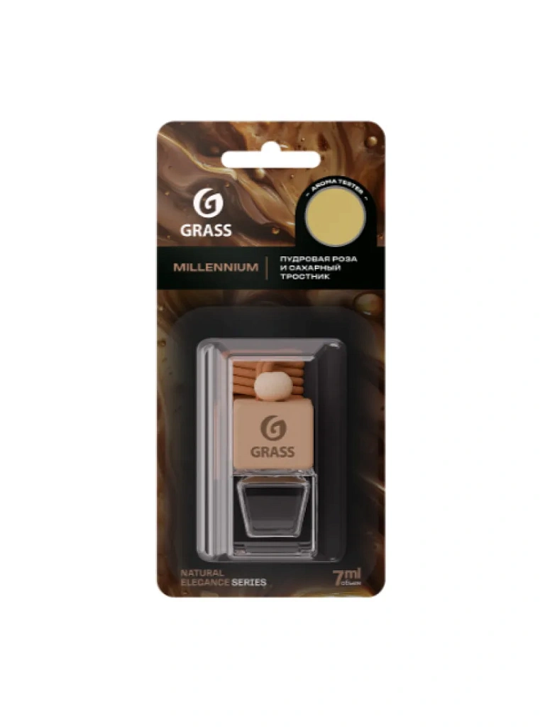 Ароматизатор жидкий подвесной серии Grass Millenium. Деликатная пудровая роза с нежным фруктовым букетом и бархатистыми сахарным тростником. Композиция переливается цветочными и сливочными нотами, делая аромат тёплым, мягким и стойким. Не содержит спирта.