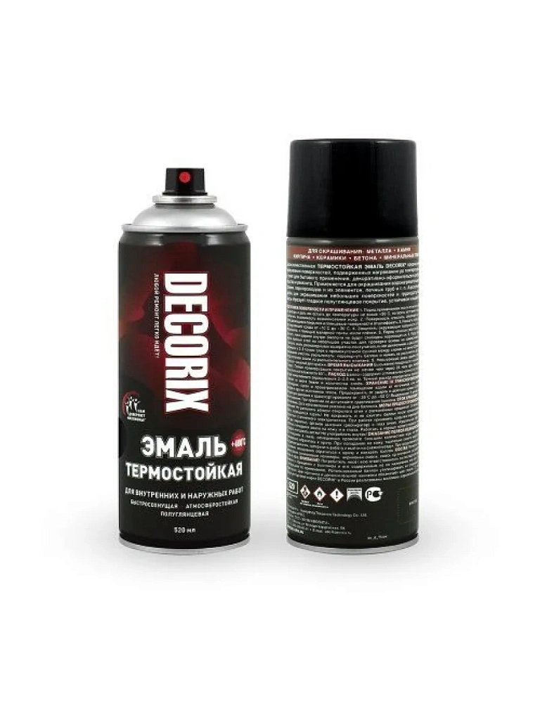 Высококачественная термостойкая эмаль DECORIX предназначена для окрашивания поверхностей, подверженных нагреванию до температуры +400°С, а также для бытового применения, декоративно-оформительских работ, строительства и ремонта.