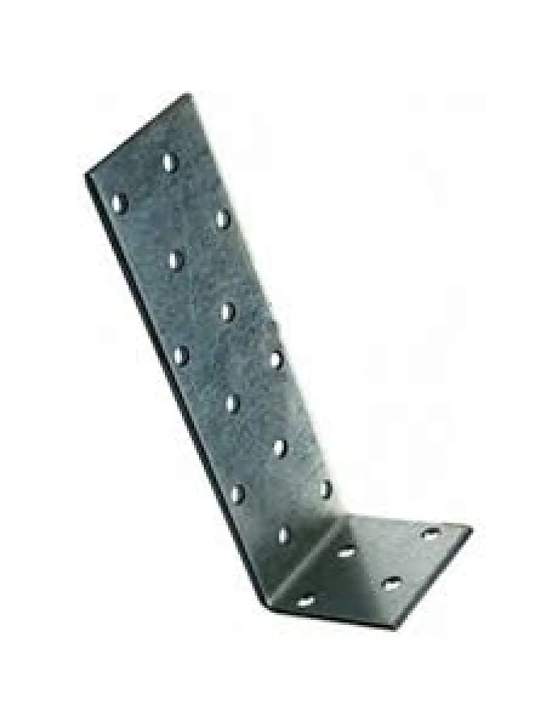 Крепежный уголок равносторонний производится из стали с перфорацией, имеет сгиб под прямым углом. Толщина металла 2 мм, диаметр перфорированных отверстий 5 мм. Уголок может использоваться для крепления несущих деталей в строительстве или вспомогательных элементов.
