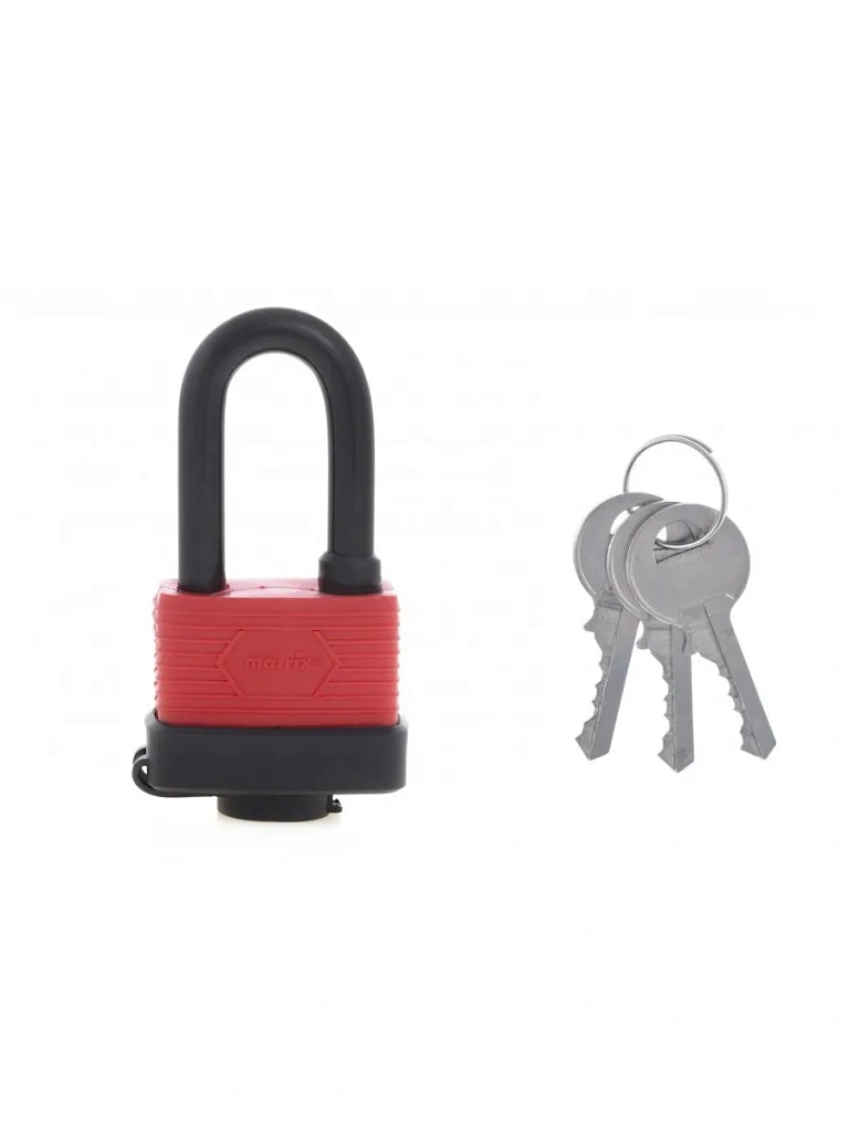 Навесной замок с прочным обрезиненным корпусом. Конструктивные особенности замка (герметизация корпуса и дужки замка, минимальный размер зазоров между деталями, специальная крышка на ключевой блок) значительно повышают его стойкость к атмосферным осадкам, предупреждая коррозию и продлевая срок службы. Высокая закаленная дужка стального засова удобна при наличии на дверях высоких запорных петель («разбоев»). Особенности конструкции снижают вероятность взлома. В комплекте 3 ключа.