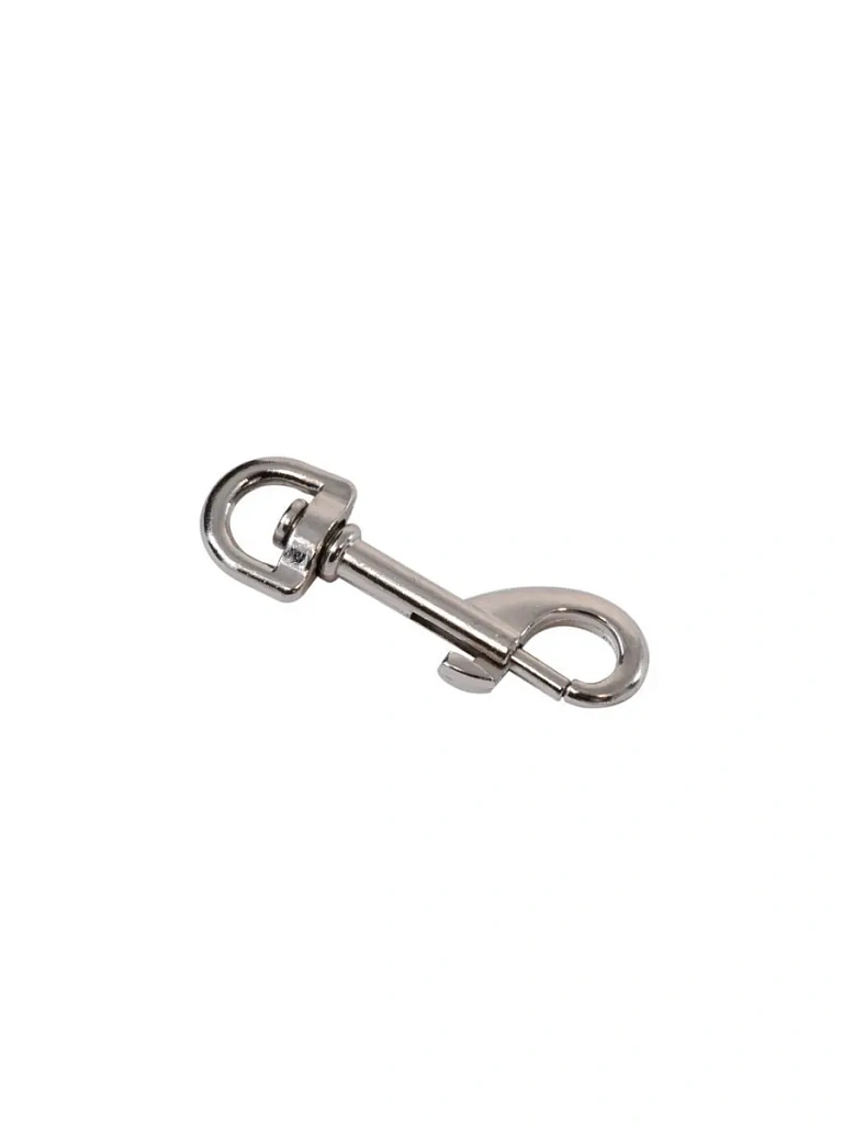 Карабин бытовой никелированный, оснащенный поворотной головкой и защелкой с пружинным механизмом, применяют в бытовых целях для соединения цепей, ремней, шнуров. Пружинный механизм карабина исключает самопроизвольное открывание, обеспечивая тем самым надежность сцепки. Поворотная головка не позволяет скручиваться соединенным частям. Карабин изготовлен из никелированной стали, гарантирующей долголетие.
