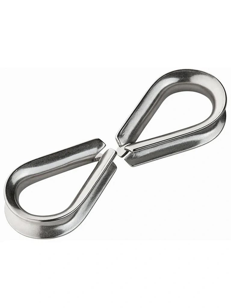 Коуши ART 9073 – этот крепеж представляет собой незамкнутую металлическую конструкцию каплевидной формы с краями, загнутыми наружу так, чтобы образовывался желоб. Эти изделия используют для усиления внутренней стороны петель тросов или канатов. Что защищает такелажные приспособления: от излишних изломов, делая изгибы петли более плавными, и от истираний, принимая на себя основной вес крепежных проушин груза, карабинов или крюков подъемных механизмов. Рекомендуется применение коуша для защиты канатов из синтетики, растительных волокон, а также металлических канатных строп при их интенсивной эксплуатации и экстремальных нагрузках.