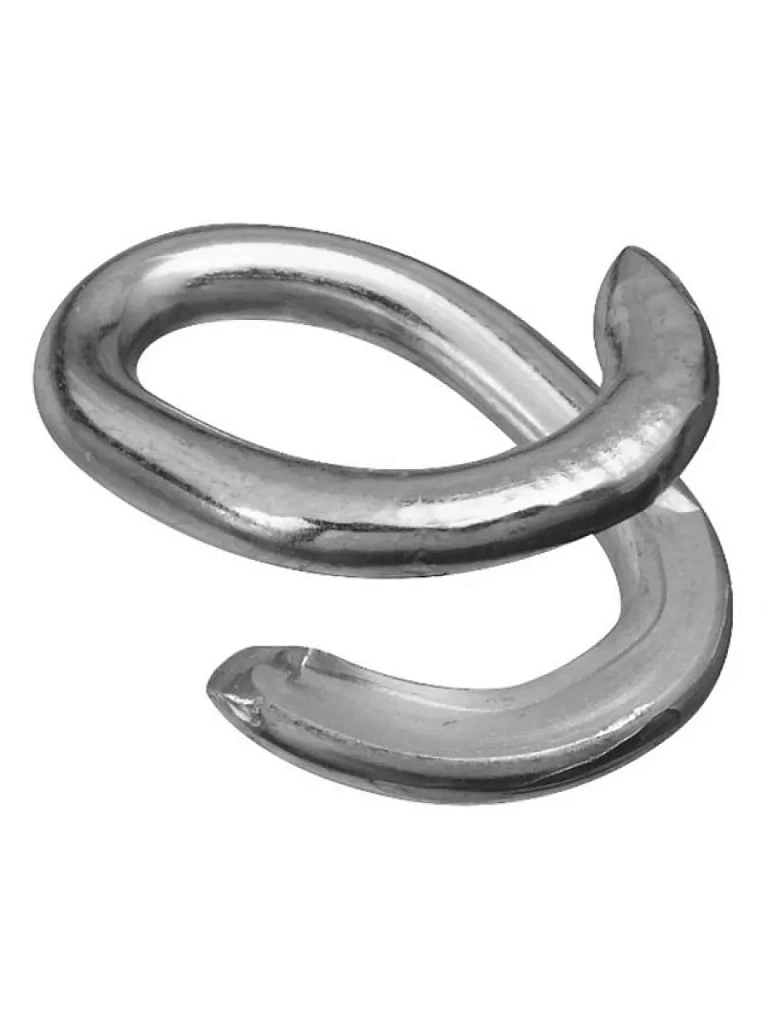 Соединитель цепи серьга открытый – это такелажный элемент, используемый в качестве монтажного соединительного звена при ремонте всех видов цепей. Необходимость в использовании возникает при разрыве любого вида цепей, для сращивания одного или нескольких звеньев. Закрепить соединение можно с помощью сварки. Обработка: цинкование. Материал: сталь C15.